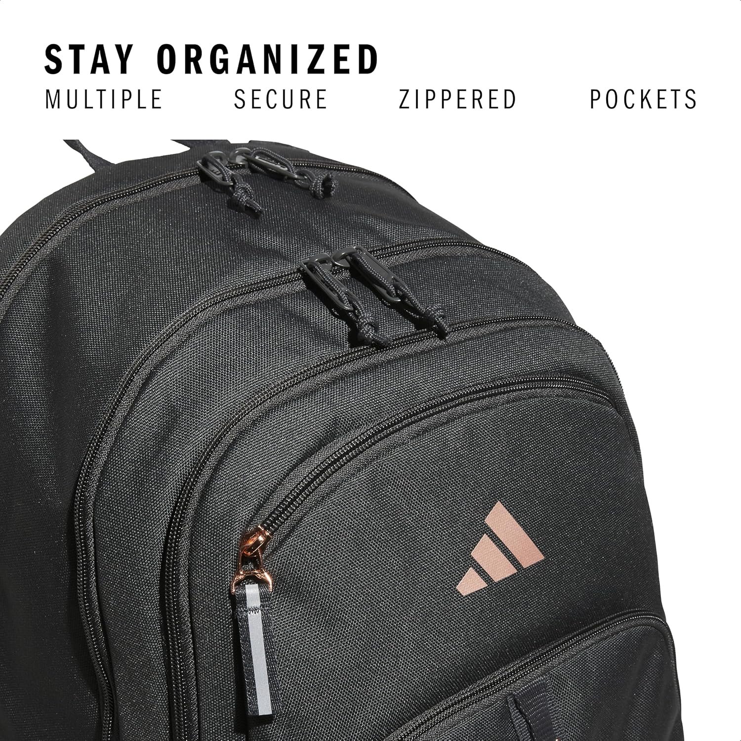 When your items are organized, your day runs more smoothly. Tuck everything you need in this adidas backpack, and you’re ready to head out the door. It works well as a travel backpack and backpack for work with plenty of pockets. The padded compartment fits your laptop, making it an excellent tech backpack. Whether you need an everyday backpack, a laptop travel backpack, backpack for women, or backpack for men, this adidas backpack is suitable for both traveling and workouts. This adidas Prime 7 backpack with lots of pockets can store your essentials. Workday or workout, you’re all set.