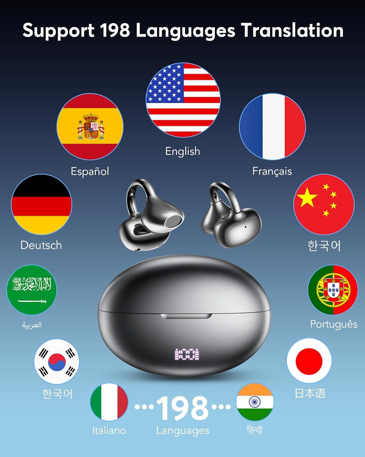 👍High Translation Accuracy: Supports real-time two-way translation in 198 languages, including English, Spanish, Chinese, Russian, German, French Italian and Japanese, Korean etc, meeting global communication needs. It also includes advanced features like AI Assistant, AI Chat, and photo translation, making it an all-in-one device for work and daily use.These ai powered translation earbuds allow you to break language barriers instantly, making them ideal translating earbuds real time for going abroad, learning language, international travel, business meeting, exhibitions, emergency translation etc.