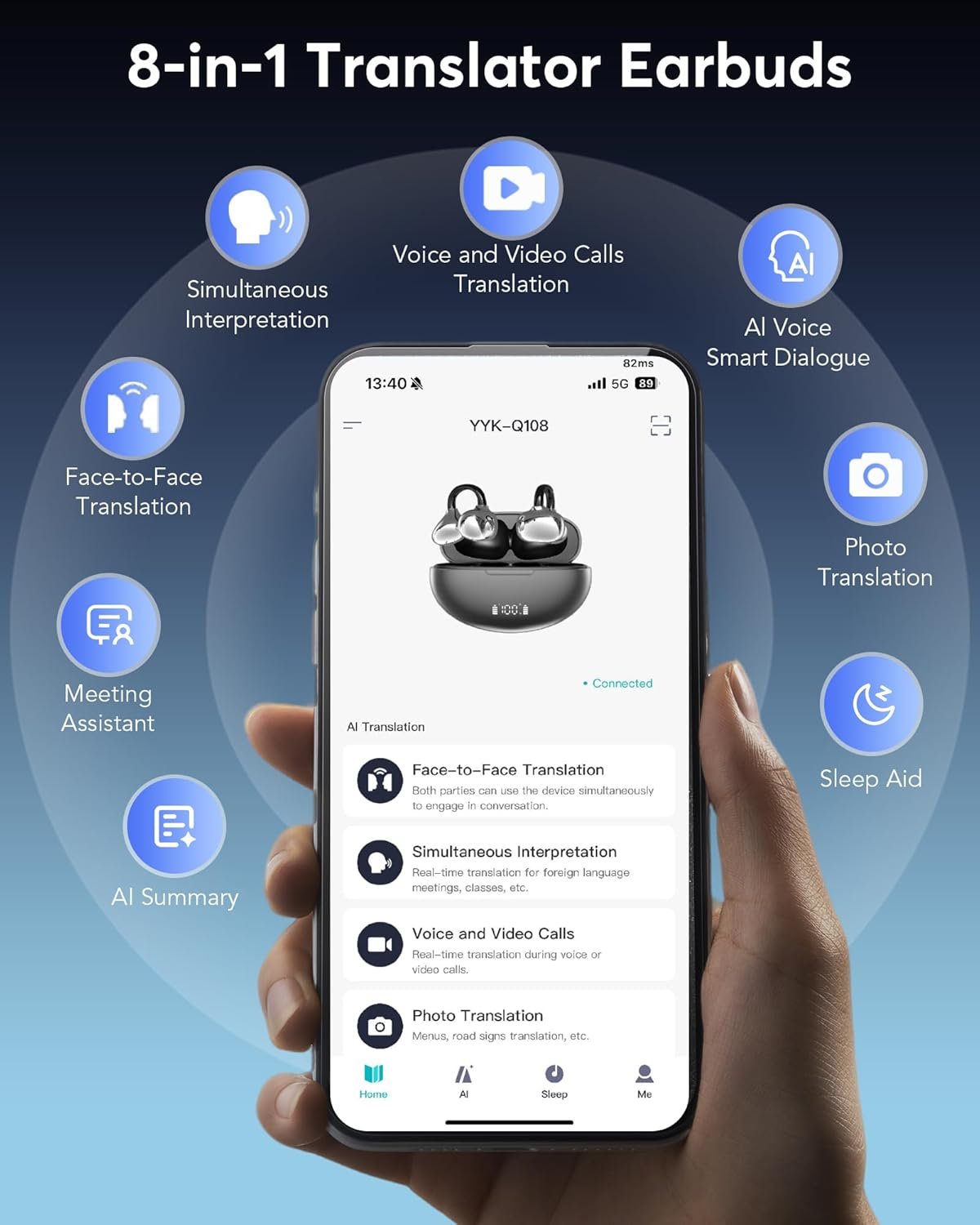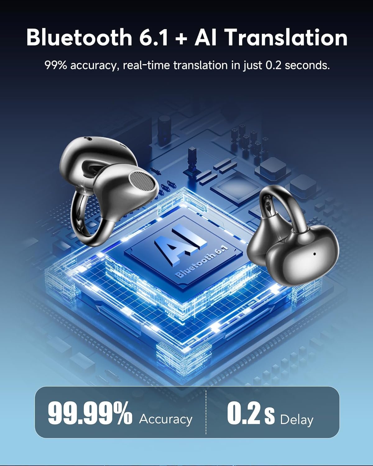 👍Newly upgraded Bluetooth 6.1: Q108 clip-on earbuds feature the most advanced Bluetooth 6.1 technology, allowing you to immerse yourself in lightning-fast data transmission speeds and a stable connection. With 99.99% translation accuracy and just 0.2 seconds of latency, they deliver a seamless experience.With clever automatic power-on and connection features, you can enjoy a smooth, low-latency audio experience from the moment you take the earbuds out of the charging case.AI translation provides you with a better user experience.