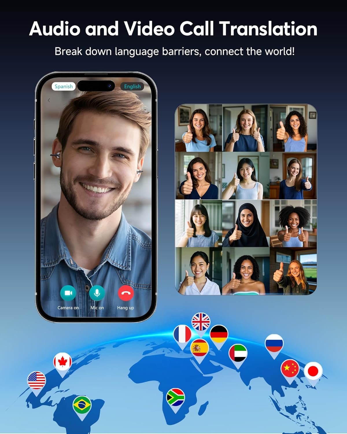 👍Multi-Scenario Translation Modes: Includes Simultaneous Interpretation Translation, Face-to-Face Translation, Voice and Video Call Translation and Photo Translation, .Users wear wireless translating earbuds for face-to-face chats, or use bluetooth translation ear buds and phone for seamless two-way conversation, or translate audio/video calls by sharing a link. These language translator ear buds offer real-time translating — making them the perfect AI translation earbuds real time for global communication.