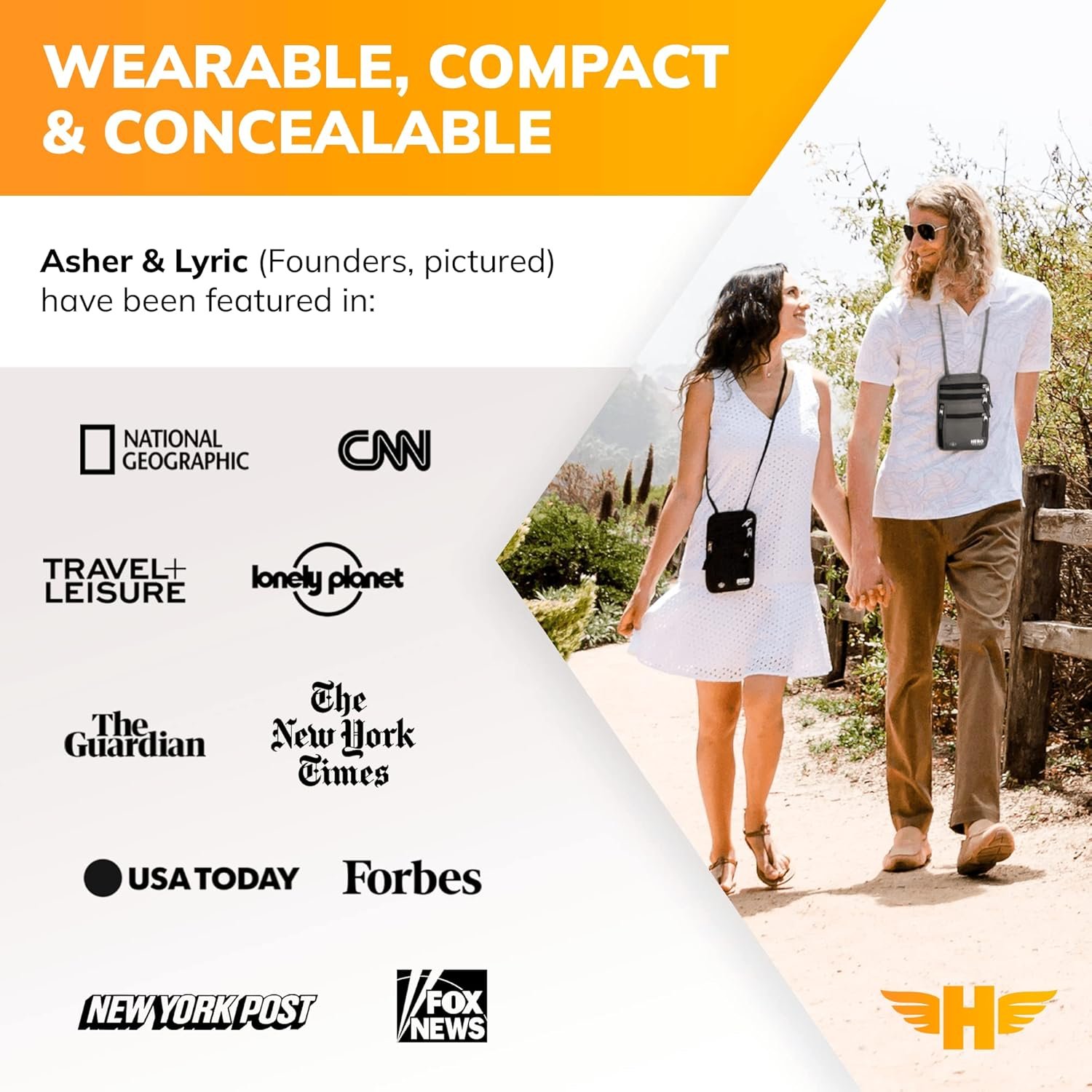 HERO Neck Wallet, RFID Blocking Passport Holder, Easy to Conceal Travel Pouch