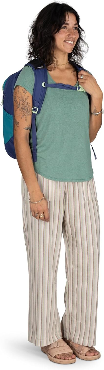 The Osprey Daylite Expandable Travel Pack 26 plus 6L is a lightweight, adaptable travel backpack crafted for those who value flexibility and efficiency. Perfectly sized to fit the majority of international airline personal item requirements, this pack maximizes capacity without sacrificing compactness or comfort. Its expandable main compartment adds an extra 6 liters (2 inches) of internal space, allowing you the option to convert the pack from a streamlined personal item into a standard carry on for longer trips or when extra packing room is needed. The AirScape backpanel offers ventilated comfort with mesh-covered, die-cut foam padding to keep your back cool and supported throughout your journey. A dedicated tech sleeve safeguards laptops or tablets, while the front zip pocket is designed to hold TSA-compliant 3-1-1 liquids bags and other quick-access essentials. Two expandable stretch water bottle pockets ensure hydration stays within reach. Additional features include a luggage pass-through sleeve, which slides over your wheeled luggage handle, trolley handle pass-through, adjustable backpack straps and a sternum strap for added carrying support. Constructed with durable, high-quality materials, the Daylite 26 plus 6L is the ultimate personal item travel companion. A bluesign PRODUCT designed to meet the needs of modern travelers.